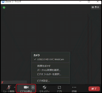 Zoom以外のアプリがカメラを使用している場合Zoomにカメラ映像が送られない場合があります。